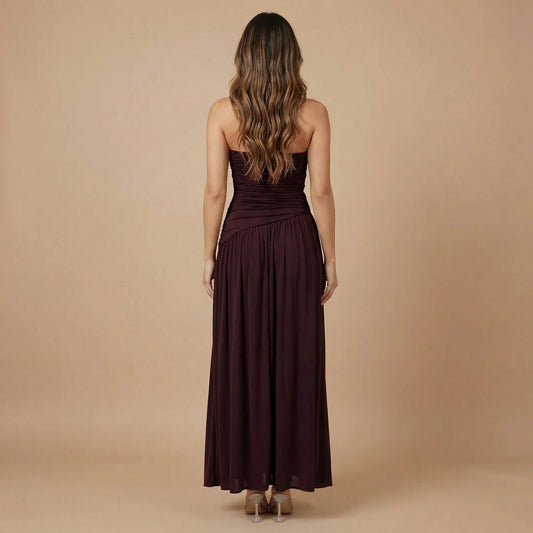 Women's Wedding Guest Pleated Sweetheart Maxi Dress