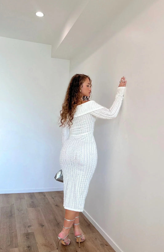 Women's Cocktail Off Shoulder Long Sleeve Midi Dress
