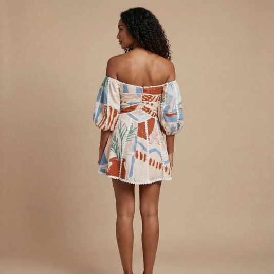 Women's Cocktail Off Shoulder Printed Puff Sleeve Mini Dress