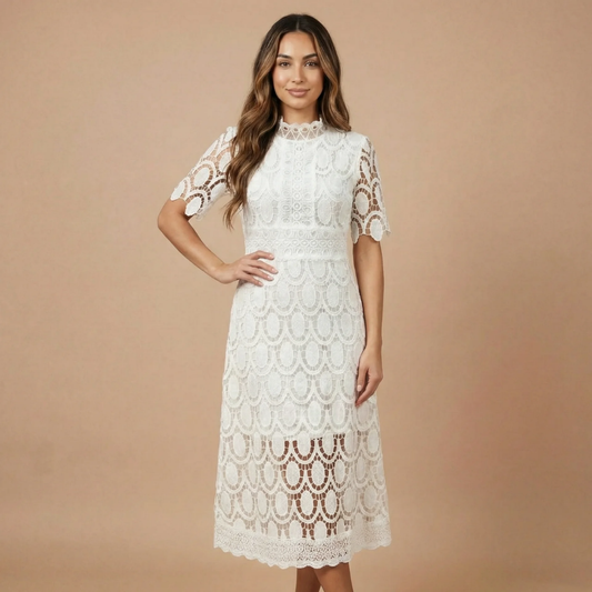 Women's Cocktail Lace Mock Neck Midi Dress